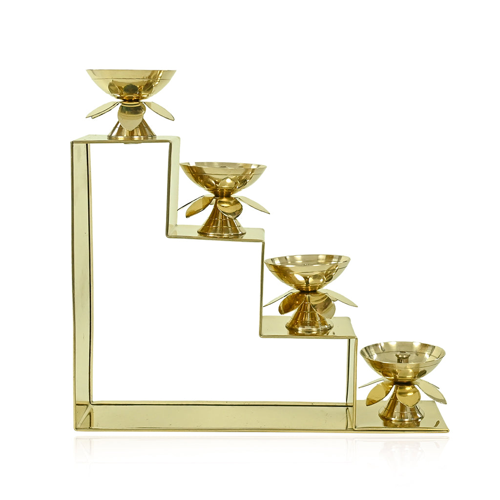 The Brass Lotus Diyas with Four Step Stand by Suyogah is a must-have for anyone who loves the beauty and elegance of traditional Indian decor. Its high-quality construction, classic design, and versatile functionality make it a beautiful addition to any space. Whether you're looking for a unique and meaningful piece of Indian decor or simply want to add some warmth and ambiance to your home, this set of diyas is an excellent choice.
