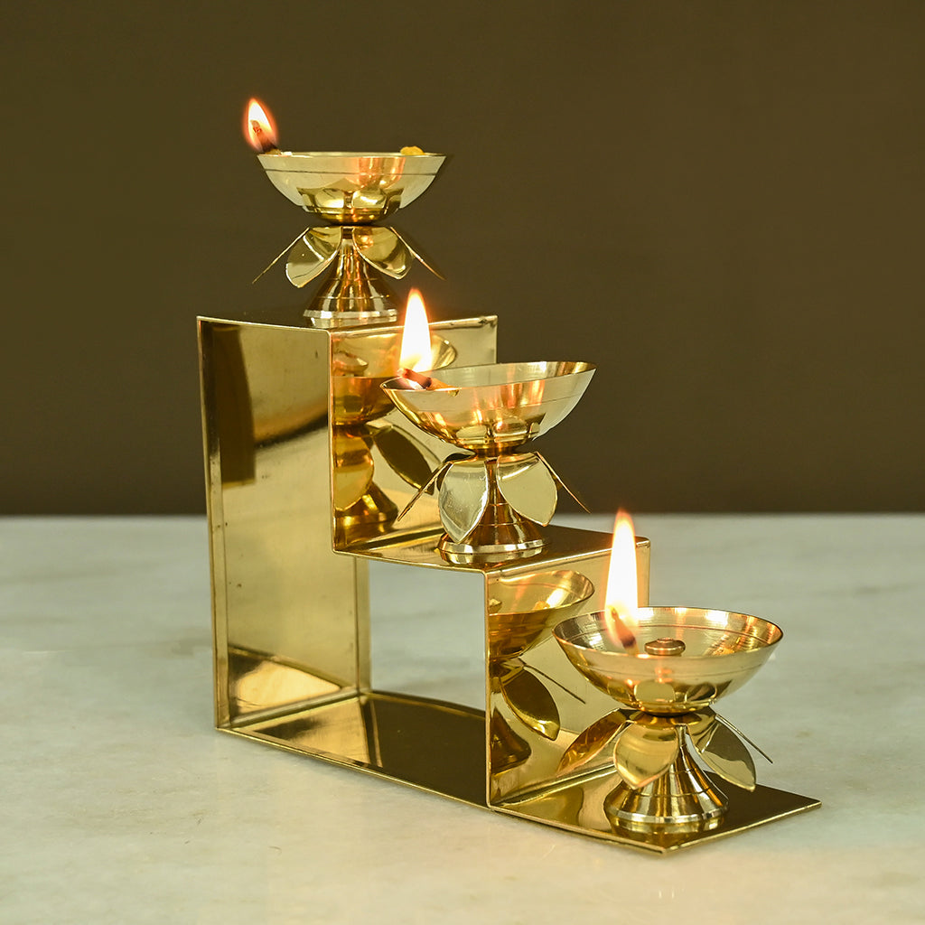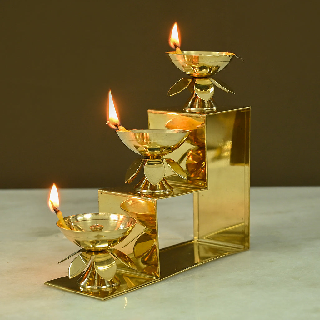 Each diya has a small bowl at the top where you can pour in oil and a wick, which is then lit to produce a warm and inviting glow. The lotus design of the diya adds a touch of elegance to any space, making it perfect for use as a decorative piece in your living room, bedroom, or dining room.