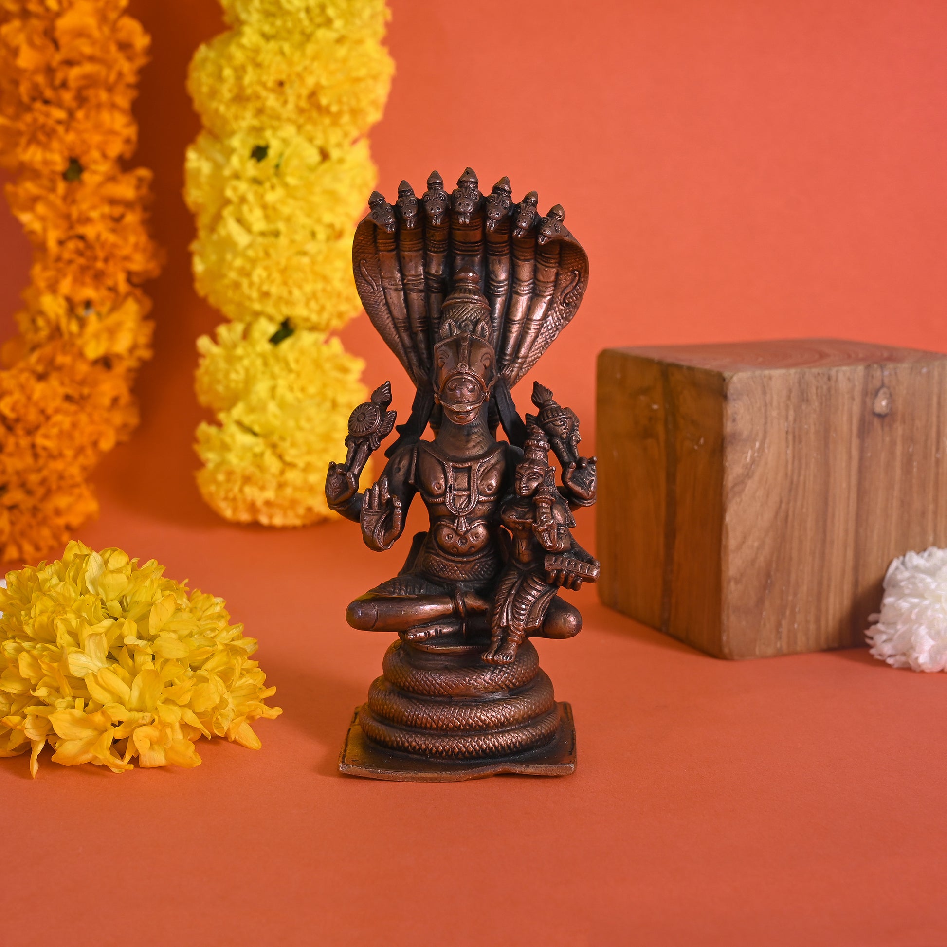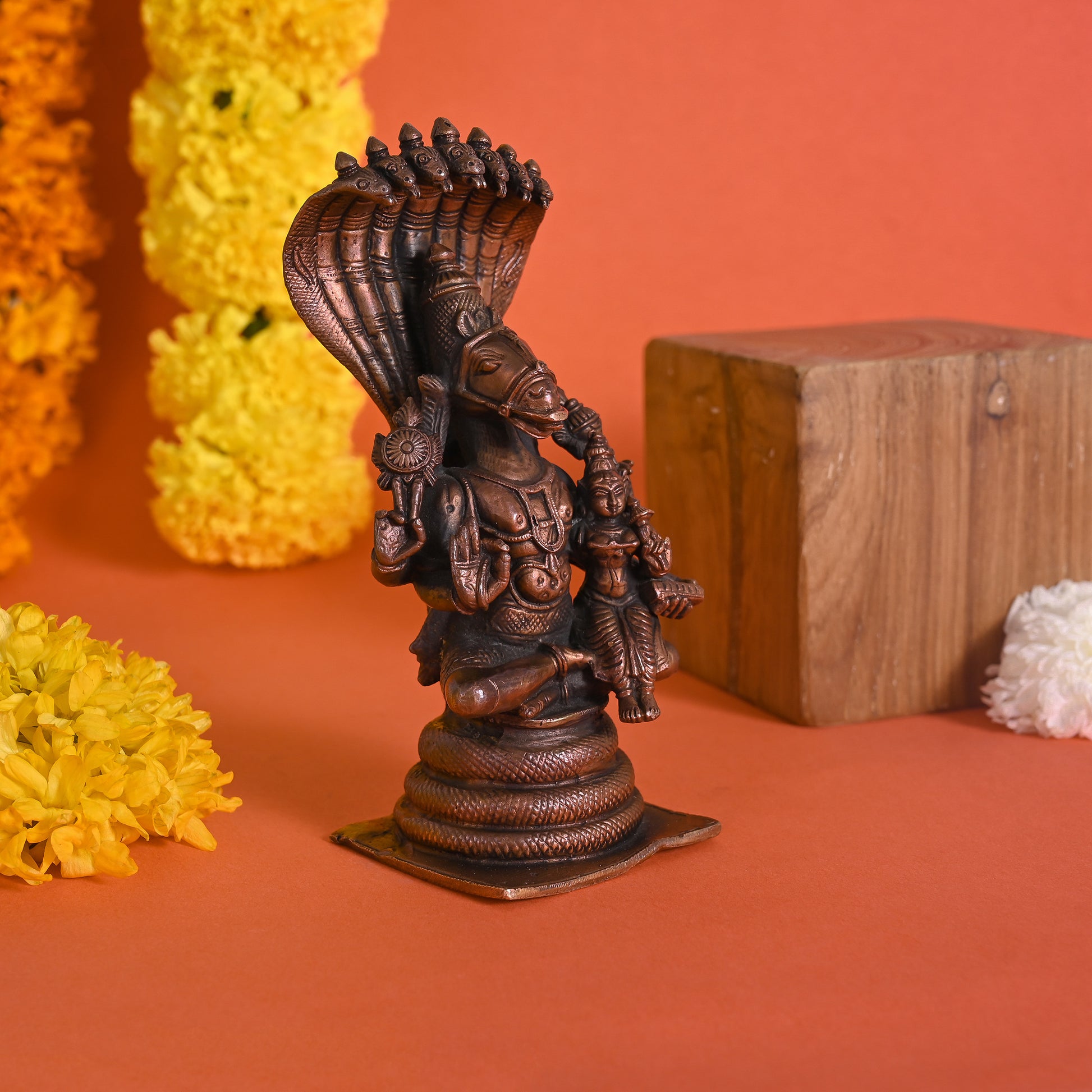 Bring home the Power & Radiance of the exquisitely crafted fine finish quality Varaha with Lakshmi on Sheshanaga beautiful copper idol from Suyogaḥ to place in your pooja room. It is ideal for daily worship.