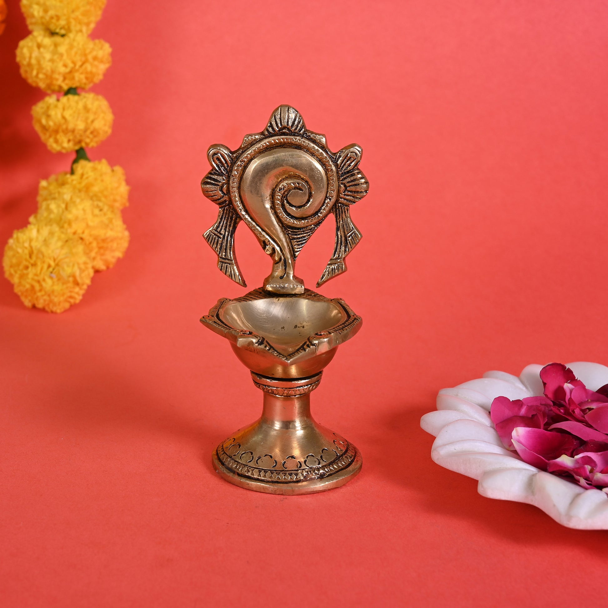 Chakra is the Sanskrit word for 'wheel,' referring to physical or spiritual energy in the human body. When the life force energy moves freely through the body, the chakras spin, and individuals can reach a state of pure consciousness. This beautifully handcrafted Shankh Chakra Diya from Suyogaḥ will invite positivity and prosperity . It will be a perfect addition to your pooja room.